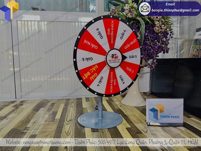 Vòng quay số ngẫu nhiên Thiên Phúc với nhiều mẫu mã giá thành phù hợp đáp ứng nhu cầu mẫu mã chất lượng và đem đến sự phù hợp nhất cho từng quý khách hàng.Thiên Phúc chuyên thiết kế và cung cấp vòng xoay may mắn trúng thưởng, làm vòng quay trúng thưởng, thiết kế vòng quay may mắn đặt làm vòng quay trúng thưởng. vòng quay để bàn trúng thưởng được làm bởi nhiều mẫu mã theo sự phù hợp của quý khách hàng.