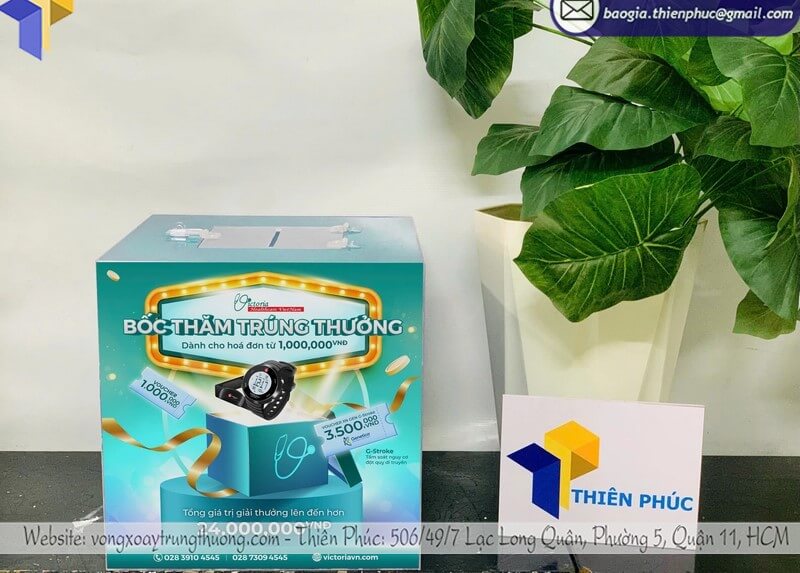 Tên sản phẩm: Báo giá hộp rút thăm may mắn mica trong minigame cho nhãn hàng VICTORIA