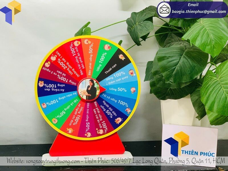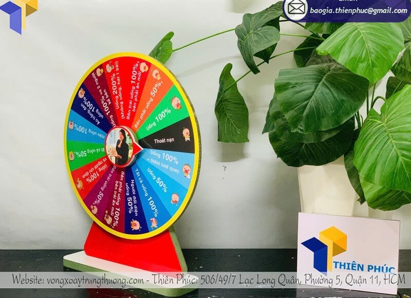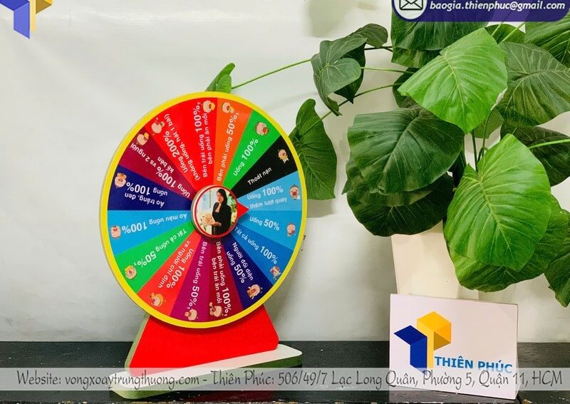 Báo giá vòng quay gỗ để bàn minigame giá sỉ - Thiên Phúc là xưởng chuyên cung cấp - sản xuất - gia công mẫu vòng quay gỗ để bàn với đường kính chủ yếu là 30cm, 40cm với báo giá nhanh chóng chi tiết nhất trong 5 phút. Dao động với giá rẻ nhất chỉ từ 400.000đ - 500.000đ/cái, với thiết kế logo nhiều ô trúng thưởng. Liên hệ với Thiên Phúc tư vấn chi tiết hơn. Đặt hàng số lượng lớn tính giá sỉ.