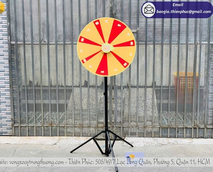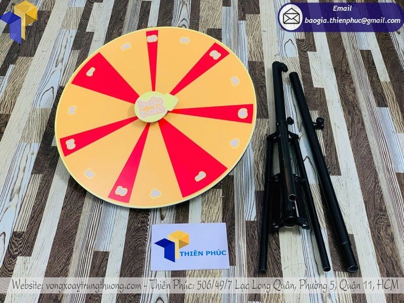 Vòng quay càng lớn, khả năng thu hút càng cao nhưng chi phí sản xuất cũng tăng theo. Các kích thước phổ biến thường dùng cho sự kiện từ 60cm, 80cm đến 1m hoặc lớn hơn.