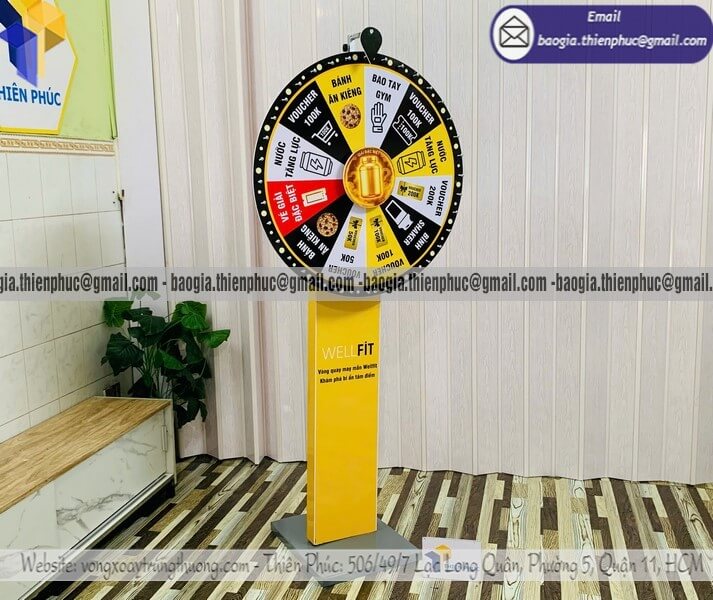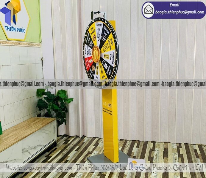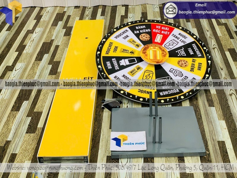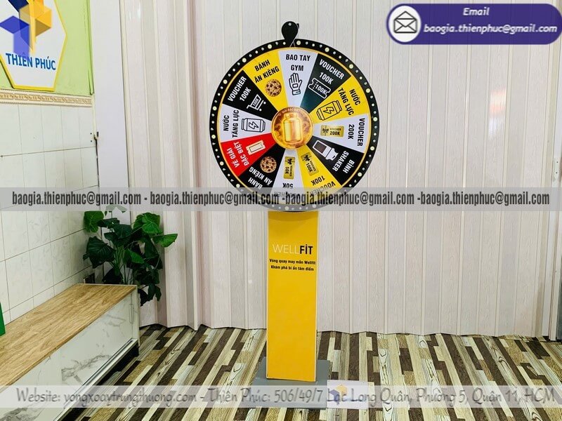 Báo giá Vòng quay minigame trúng quà chương trình event - Xưởng sản xuất & Công Ty Thiên Phúc chuyên nhận sản xuất - gia công - cung cấp nhiều mẫu vòng xoay quảng cáo cỡ lớn trúng thưởng chính hãng. Giá rẻ cạnh tranh nhất thị trường dao động chỉ từ 1.300.000đ/cái - 2.600.000đ/cái đối với mẫu vòng quay đứng thân trụ cỡ lớn kèm thiết kế logo các ô quà tặng, voucher miễn phí theo yêu cầu khách hàng. Hỗ trợ xuất hóa đơn VAT nhanh chóng. Giao hàng nhanh trên toàn quốc.