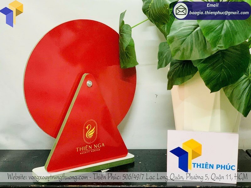 Báo giá vòng xoay minigame bằng gỗ để bàn trúng quà - Xưởng sản xuất Thiên Phúc chuyên cung cấp và gia công nhiều mẫu vòng xoay bằng gỗ với hơn 10 năm kinh nghiệm. Thiết kế logo thương hiệu miễn phí với giá dao động chỉ từ 300.000đ - 500.000đ/cái. Xưởng hỗ trợ lên đơn duyệt demo, giao luôn trong ngày tại TP.HCM