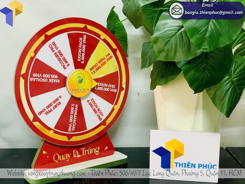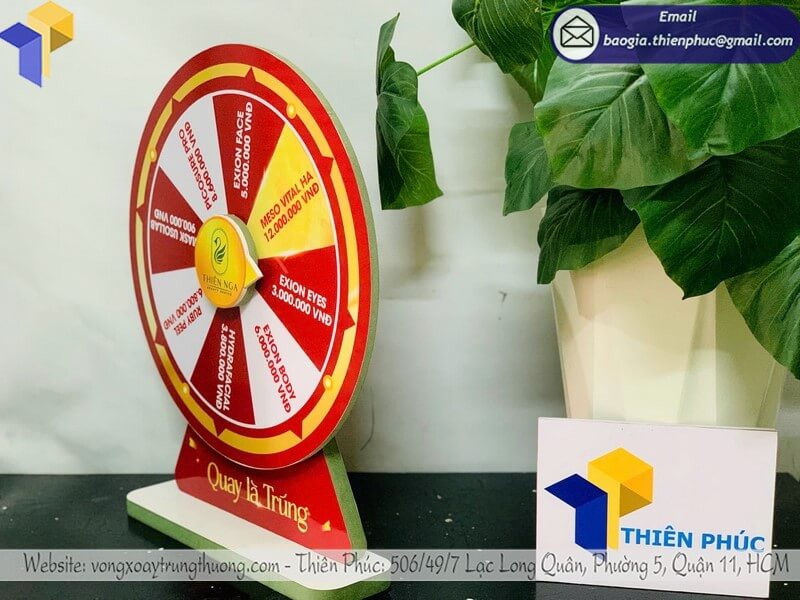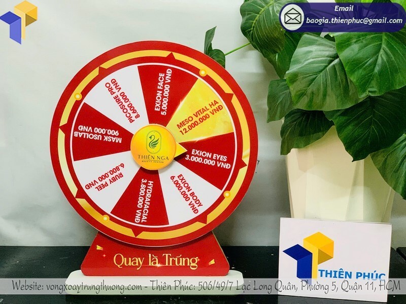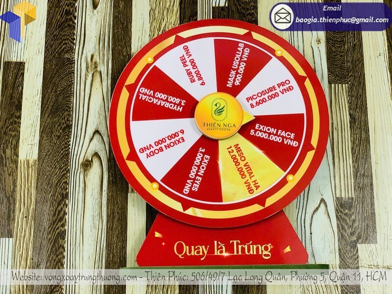 Với sản phẩm được gia công tỉ mỉ, bền bỉ và thiết kế đẹp mắt, vòng xoay không chỉ là trò chơi may mắn mà còn là công cụ quảng bá thương hiệu hiệu quả, giúp bạn tạo dấu ấn mạnh mẽ trong mọi sự kiện, chương trình tri ân hay chiến dịch marketing.