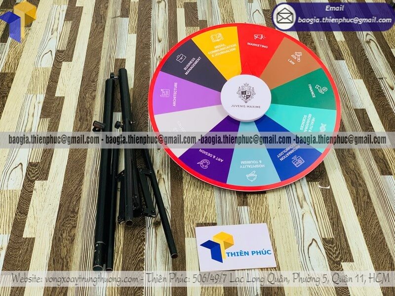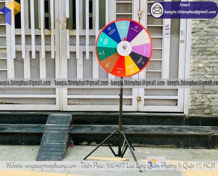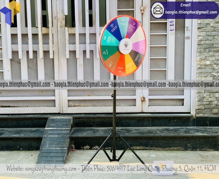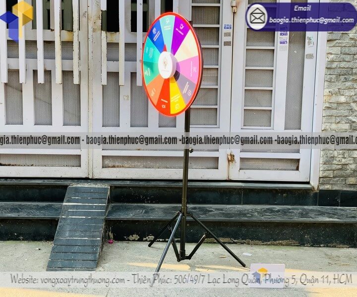 Báo giá vòng xoay số quay trúng thưởng khuyến mãi minigame - Xưởng sản xuất & Công Ty Thiên Phúc là xưởng chuyên nhận đặt làm gia công - sản xuất - cung cấp nhiều mẫu vòng quay quay thưởng với nhiều kích thước và mẫu mã khác nhau đường kính 60cm - 80cm. Thiết kế logo và in ấn theo yêu cầu khách hàng, thiết kế các ô quà tặng trúng thưởng miễn phí. Giá dao động rẻ nhất - cánh tranh nhất thị trường chỉ từ 850.000đ/cái - 1.300.000đ/cái trở lên đối với mẫu vòng quay chân xếp đứng. Đặt hàng số lượng lớn chiết khấu ưu đãi. Liên hệ ngay Thiên Phúc để nhận được báo giá chi tiết và nhanh nhất. Giao hàng trên toàn quốc trong vòng 2-4 ngày.