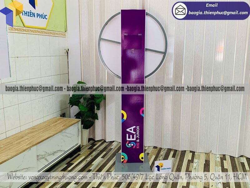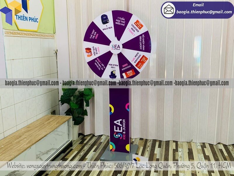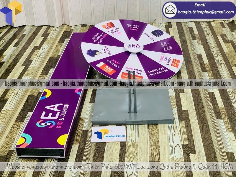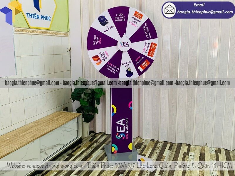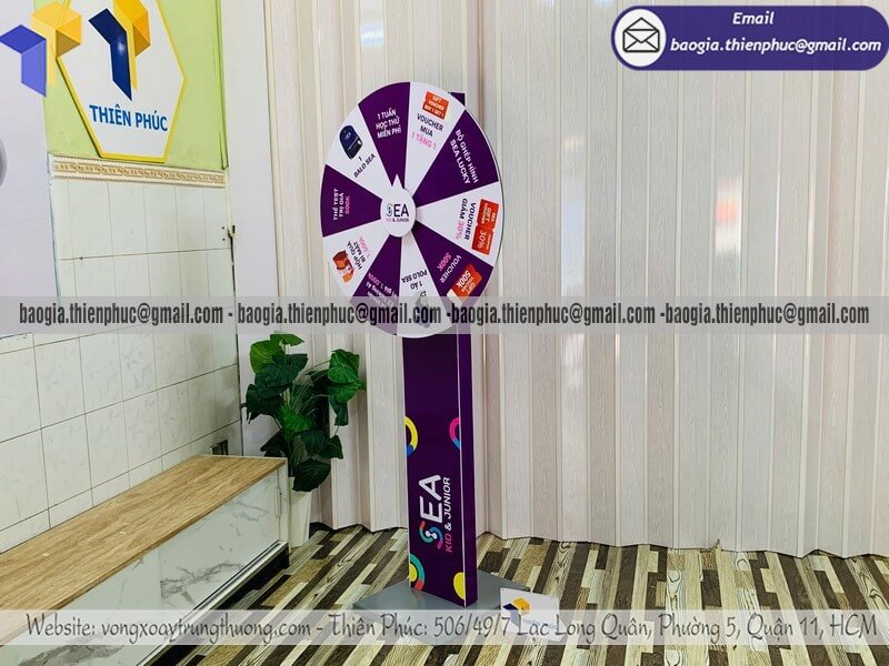 Báo giá vòng xoay thưởng giải trí ngoài trời cỡ lớn - Xưởng sản xuất & Công Ty Thiên Phúc chuyên nhận đặt làm theo yêu cầu, sản xuất, gia công, cung cấp nhiều mẫu vòng xoay quảng cáo cỡ lớn trúng thưởng chính hãng. Giá rẻ cạnh tranh nhất thị trường dao động chỉ từ 1.300.000đ/cái - 2.600.000đ/cái đối với mẫu vòng quay đứng thân trụ cỡ lớn kèm thiết kế logo các ô quà tặng, voucher miễn phí theo yêu cầu khách hàng. Hỗ trợ xuất hóa đơn VAT nhanh chóng. Giao hàng nhanh trên toàn quốc.
