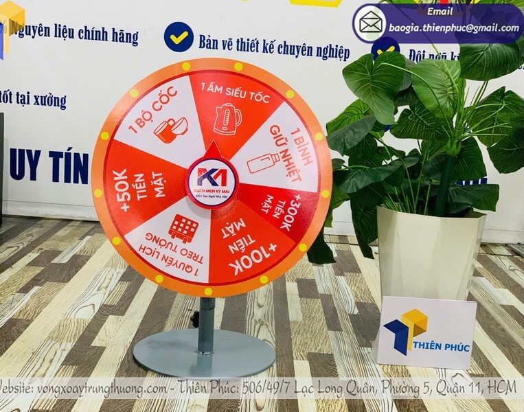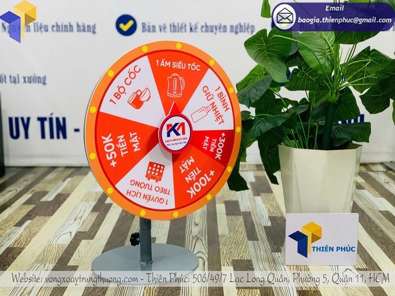 Tên sản phẩm: Báo giá vòng xoay trúng quà bằng sắt để bàn sự kiện cho nhãn hàng thương hiệu GẠCH MEN KỲ MAI