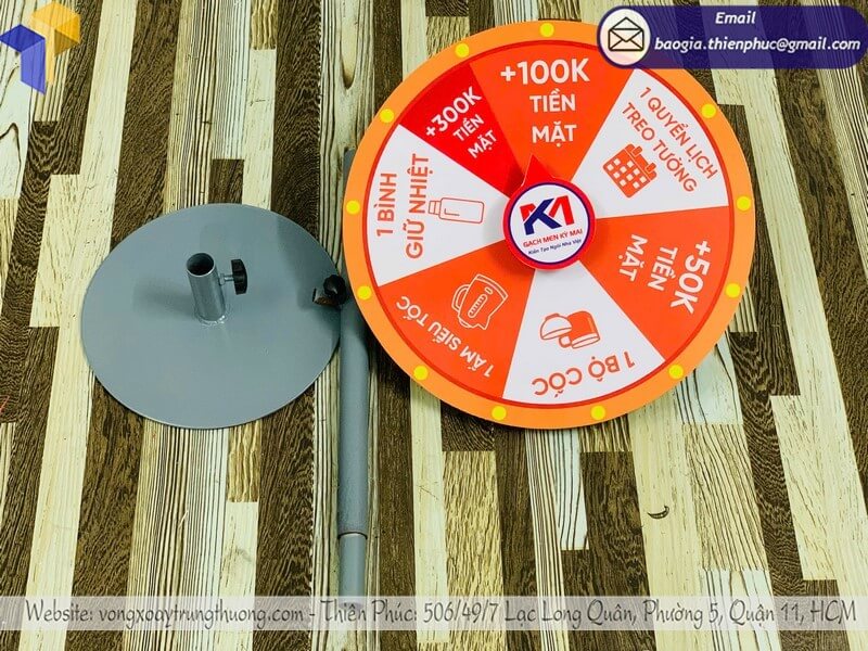 Báo giá vòng xoay trúng quà bằng sắt để bàn sự kiện - Thiên Phúc là xưởng sản xuất chuyên gia công và cung cấp nhiều mẫu vòng xoay để bàn. Giá dao động rẻ nhất - cạnh tranh nhất chỉ từ 650.000đ/cái - 750.000đ/cái trở lên cho mẫu vòng xoay bằng sắt. Liên hệ với chúng tôi để được báo giá chi tiết nhất và đặt hàng, thiết kế theo yêu cầu.