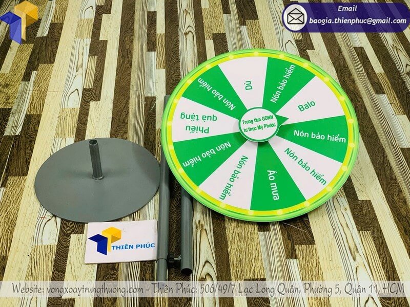 Báo giá vòng xoay trúng thưởng cỡ lớn in logo - Thiên Phúc chuyên gia công, in ấn và thiết kế miễn phí vòng xoay nhiều kích thước và mẫu mã khác nhau, giá rẻ tận xưởng, giá sỉ