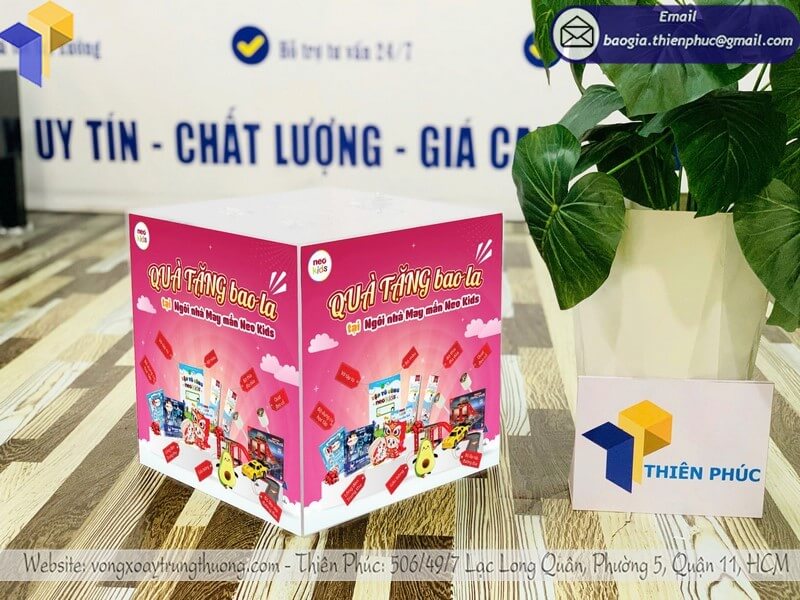 - Mẫu hộp rút thăm may mắn bằng mica kích thước size 30cm: giá dao động từ 480.000đ/thùng – 560.000đ/thùng