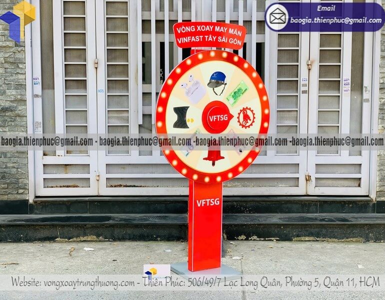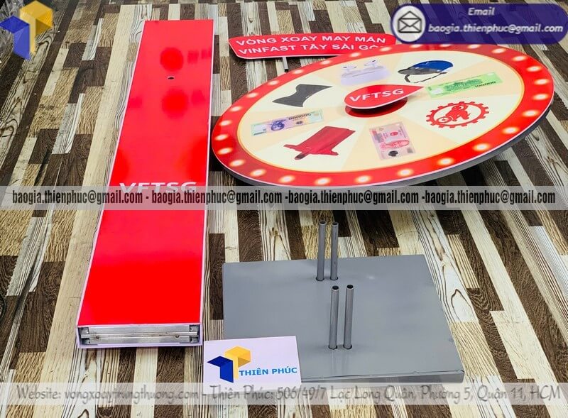 Đặt làm vòng xoay số quay trúng thưởng cỡ lớn minigame - Xưởng sản xuất & Công Ty Thiên Phúc chuyên nhận sản xuất - gia công - cung cấp nhiều mẫu vòng xoay quảng cáo cỡ lớn trúng thưởng chính hãng. Giá rẻ cạnh tranh nhất thị trường dao động chỉ từ 1.300.000đ/cái - 2.600.000đ/cái đối với mẫu vòng quay đứng thân trụ cỡ lớn kèm thiết kế logo các ô quà tặng, voucher miễn phí theo yêu cầu khách hàng. Hỗ trợ xuất hóa đơn VAT nhanh chóng. Giao hàng nhanh trên toàn quốc.