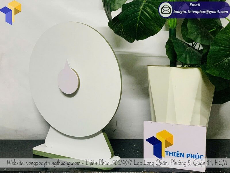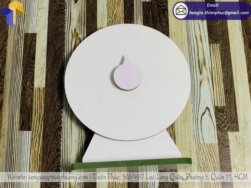 Đặt mua vòng xoay gỗ để bàn minigame in theo yêu cầu - Xưởng sản xuất Thiên Phúc chuyên nhận đặt làm vòng xoay gỗ để bàn cho minigame thiết kế theo yêu cầu. Giá dao động chỉ từ 400.000đ - 500.000đ/cái. Hỗ trợ xuất hóa đơn VAT cho doanh nghiệp, công ty. Liên hệ xưởng chúng tôi để được báo giá nhanh chóng - chi tiết nhất.