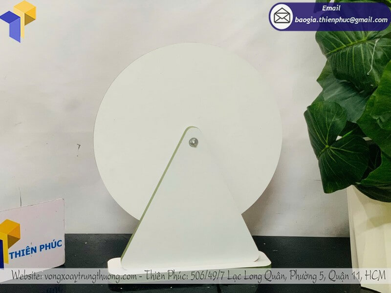 - Vòng xoay lucky draw chân đứng đế tròn: Tăng sự ổn định, sang trọng, thích hợp cho các gian hàng cao cấp.