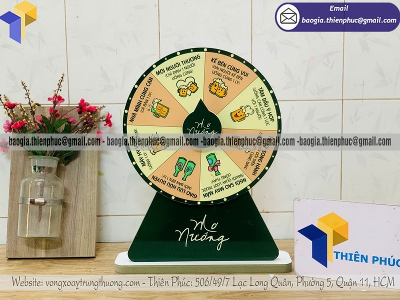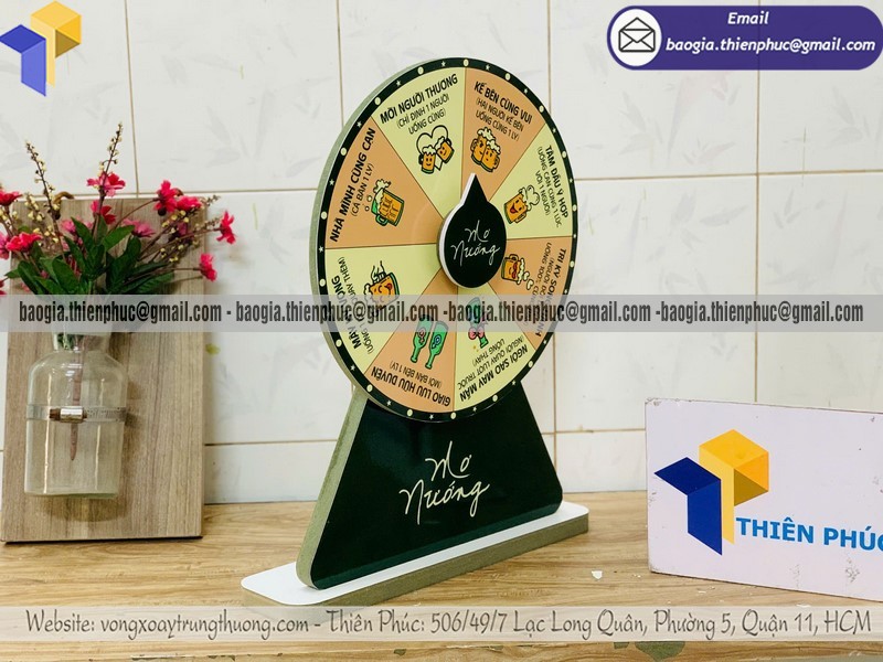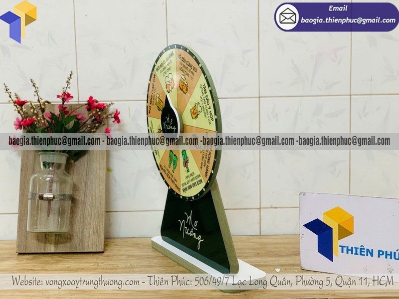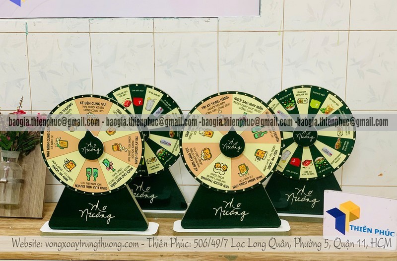 Một đơn vị sản xuất vòng quay có kinh nghiệm sẽ tư vấn kích thước, số ô quà tặng, chân đế, cơ chế quay và bố cục logo phù hợp với mục tiêu từng chương trình.