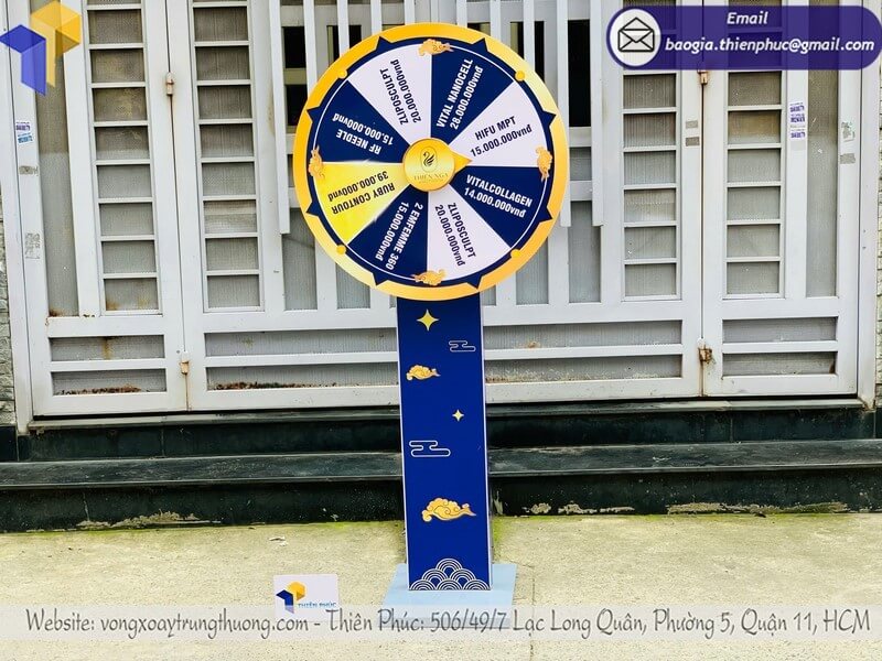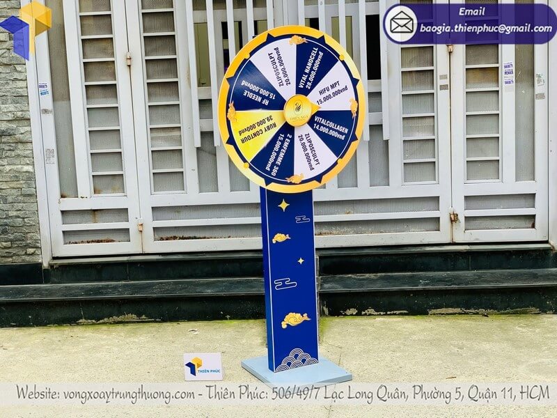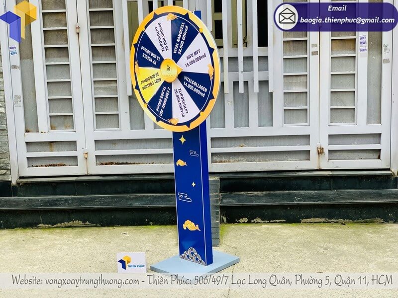 Đừng để sự kiện của bạn thiếu điểm nhấn! Liên hệ ngay hôm nay để đặt vòng quay cỡ lớn giao liền sự kiện, chỉ từ 1.500.000 VNĐ cho mẫu tiêu chuẩn với thiết kế in logo độc quyền, bánh xe chống gió và khung thép chắc chắn.