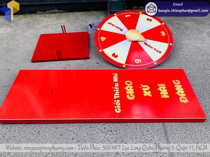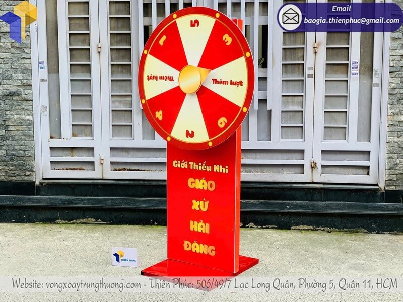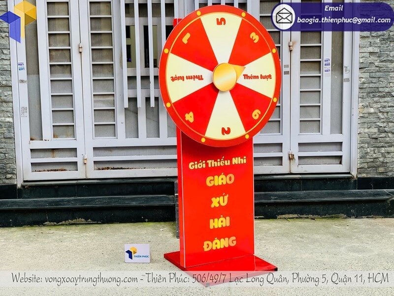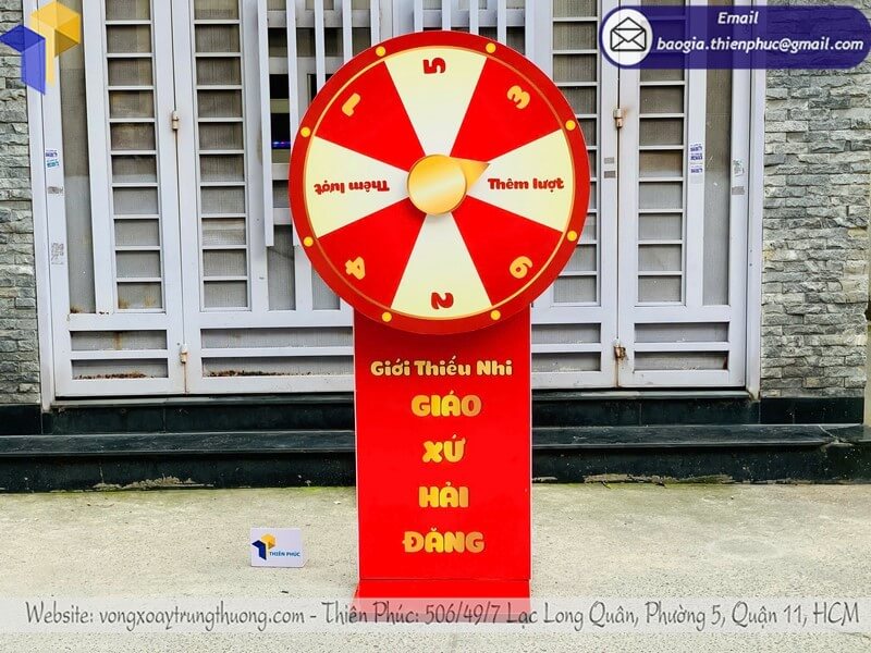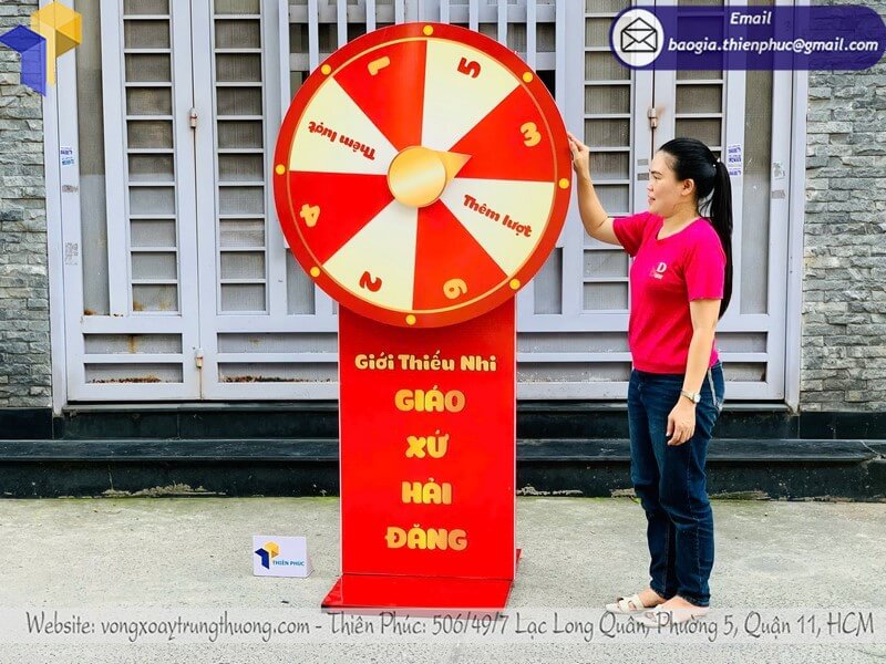 - Thiết kế thu hút và an toàn: Vòng xoay chắc chắn, bền bỉ, kết hợp màu sắc phong thủy giúp sự kiện trở nên nổi bật và may mắn.