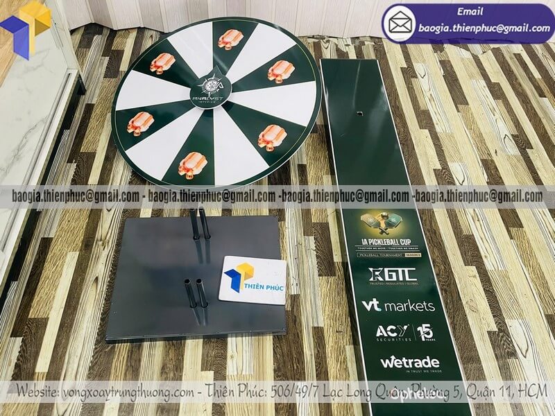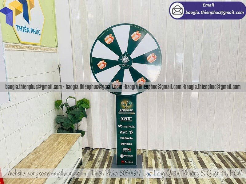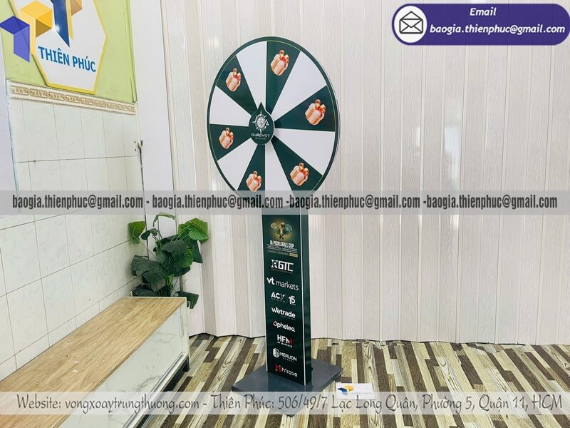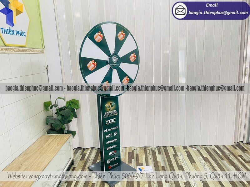 Giá vòng xoay lớn quay ngẫu nhiên tổ chức event - Xưởng sản xuất & Công Ty Thiên Phúc chuyên nhận đặt làm kích thước theo yêu cầu, sản xuất, gia công, cung cấp nhiều mẫu vòng xoay quảng cáo từ nhỏ đến cỡ lớn trúng thưởng chính hãng. Giá rẻ cạnh tranh nhất thị trường dao động chỉ từ 1.300.000đ/cái - 2.600.000đ/cái đối với mẫu vòng xoay đứng thân trụ/bảng trụ kèm thiết kế logo các ô quà tặng, voucher miễn phí theo yêu cầu khách hàng. Hỗ trợ xuất hóa đơn VAT nhanh chóng. Giao hàng nhanh trên toàn quốc từ 2-3 ngày.