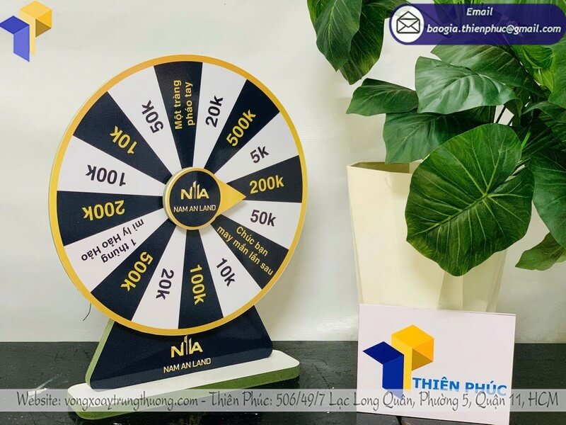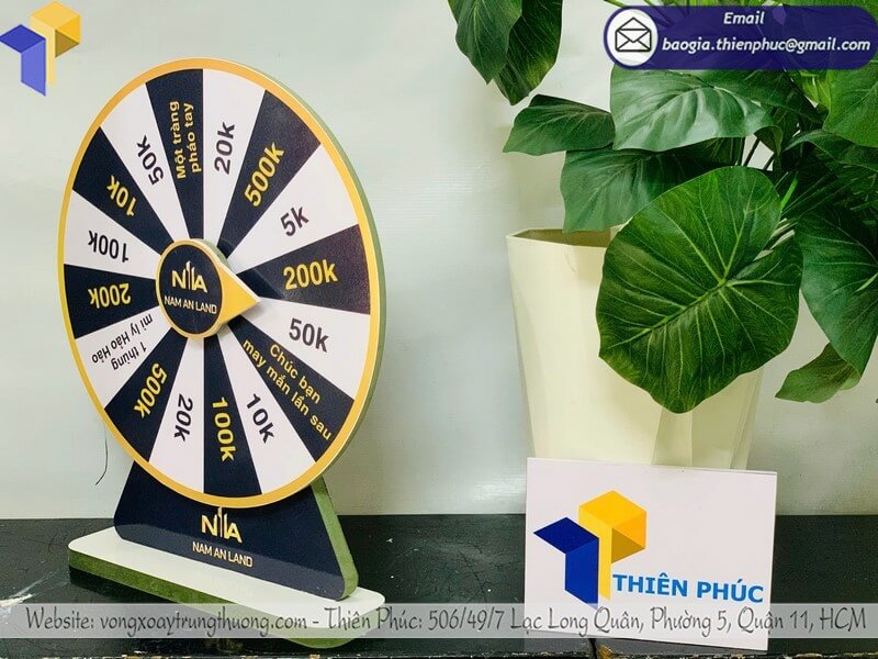 - Vòng xoay mini để bàn: Phù hợp tri ân khách hàng tại quầy bán hàng hoặc hội chợ nhỏ.