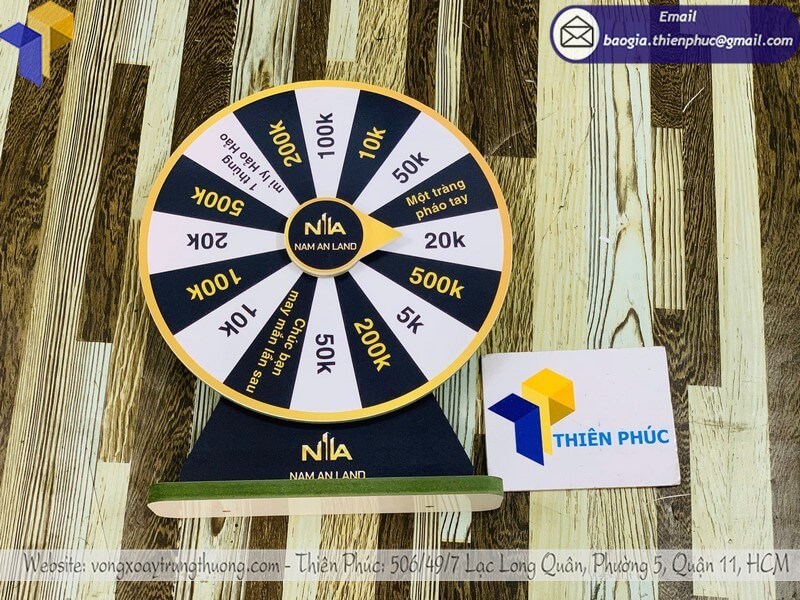 - Vòng xoay tròn gỗ tự nhiên: Kích thước 30–40cm, chia ô trúng thưởng linh hoạt.