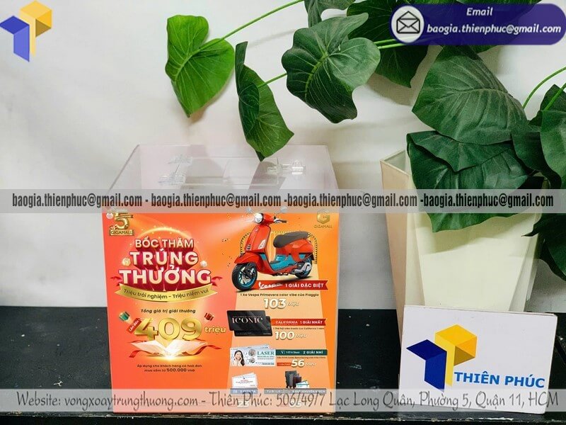 Tên sản phẩm: In hộp phiếu mica trong suốt rút thăm may mắn - BỐC THĂM TRÚNG THƯỞNG QUÀ TẶNG GIÁ TRỊ