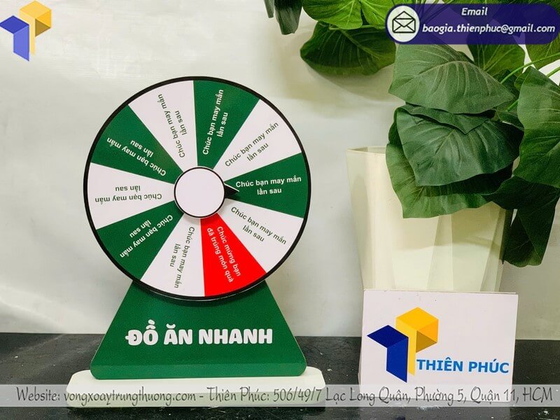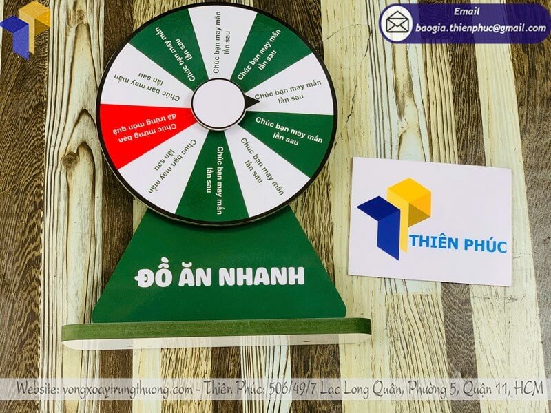 Tên sản phẩm: In logo vòng quay gỗ trúng quà để bàn cho minigame với nhãn hiệu ĐỒ ĂN NHANH