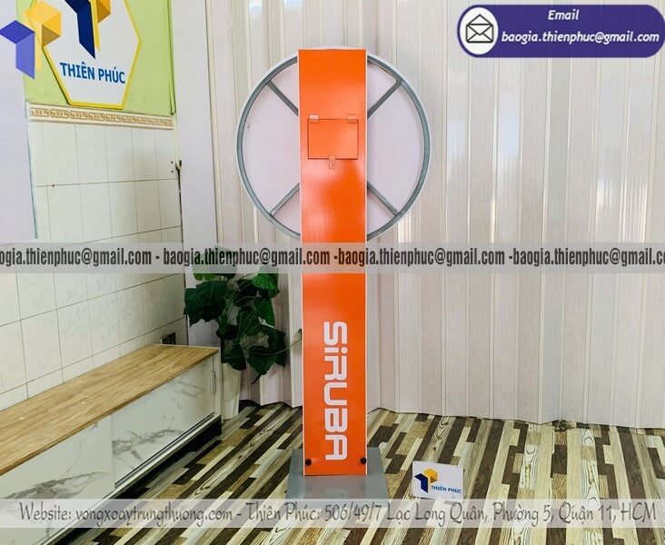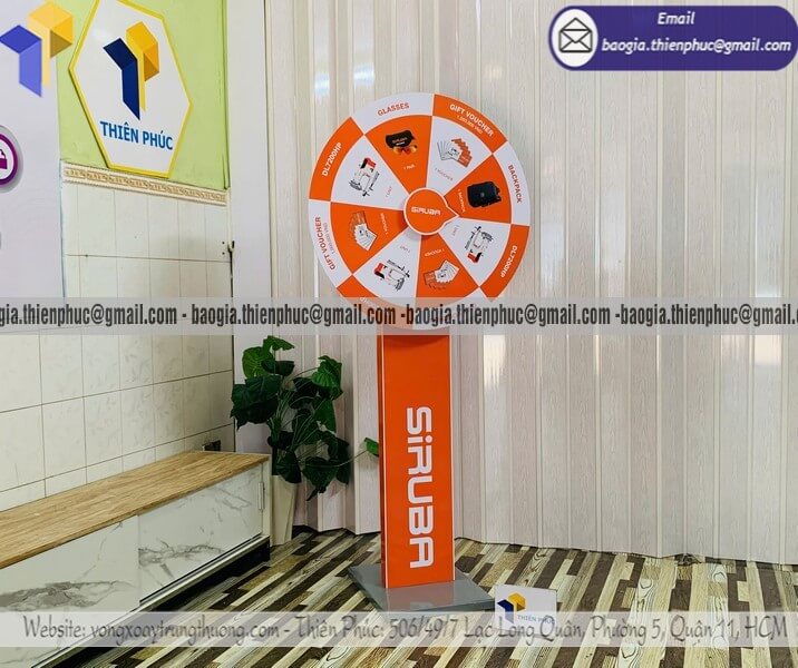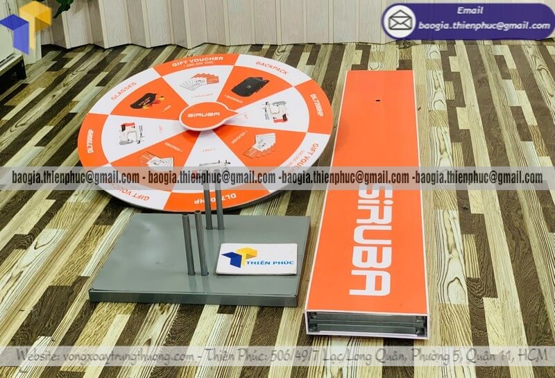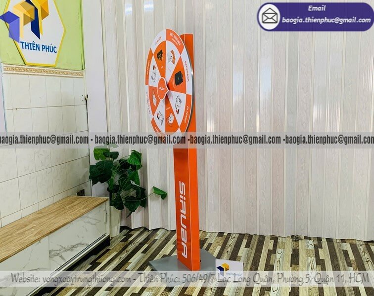 In vòng xoay trúng quà cỡ lớn cho event giải trí - Xưởng sản xuất & Công Ty Thiên Phúc chuyên nhận đặt làm theo yêu cầu, sản xuất, gia công, cung cấp nhiều mẫu vòng xoay quảng cáo cỡ lớn trúng thưởng chính hãng. Giá rẻ cạnh tranh nhất thị trường dao động chỉ từ 1.300.000đ/cái - 2.600.000đ/cái đối với mẫu vòng quay đứng thân trụ cỡ lớn kèm thiết kế logo các ô quà tặng, voucher miễn phí theo yêu cầu khách hàng. Hỗ trợ xuất hóa đơn VAT nhanh chóng. Giao hàng nhanh trên toàn quốc.