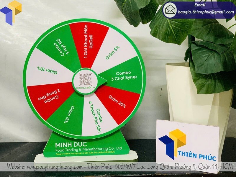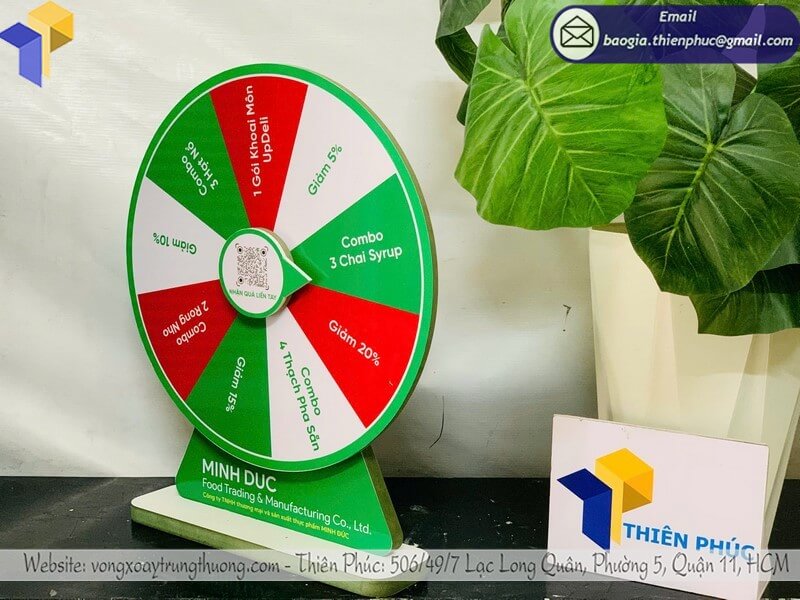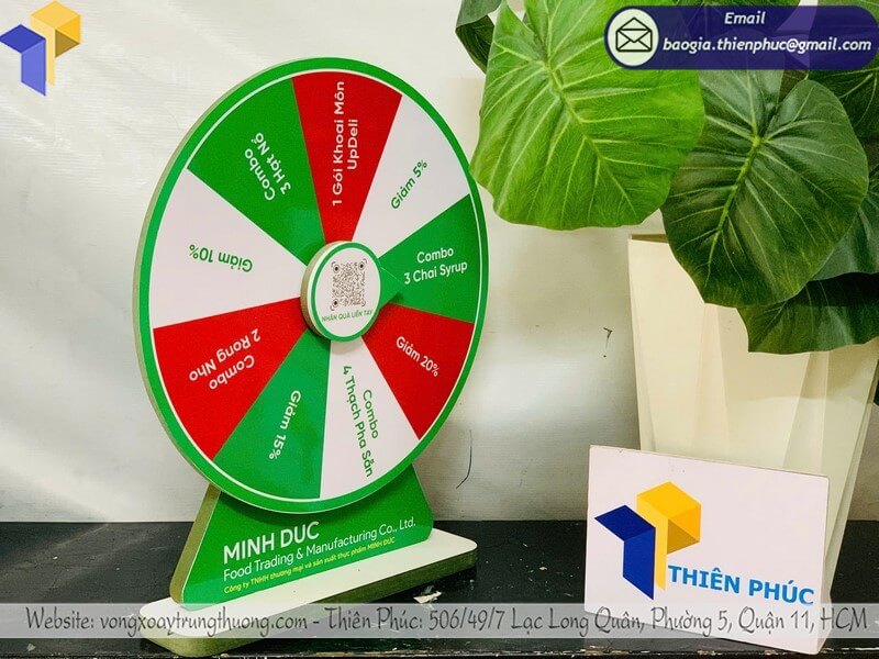 Liên hệ ngay để được tư vấn làm vòng quay may mắn để bàn theo yêu cầu, phù hợp với chương trình của bạn.