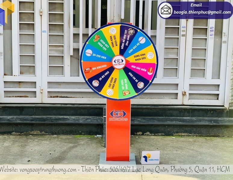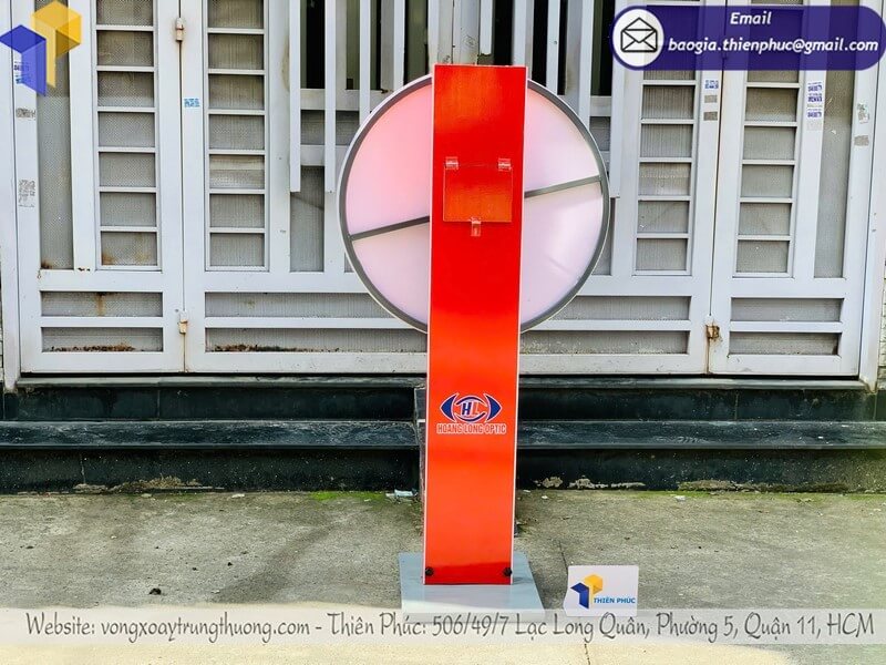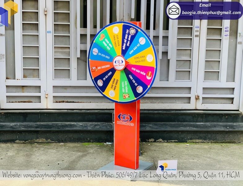 Mẫu vòng xoay may mắn quay thưởng cỡ lớn ngoài trời - Xưởng sản xuất & Công Ty Thiên Phúc chuyên sản xuất - gia công - cung cấp nhiều mẫu vòng xoay may mắn cỡ lớn quay thưởng ngoài trời. Giá rẻ nhất dao động chỉ từ 1.300.000đ/cái - 2.600.000đ/cái đối với mẫu vòng quay đứng thân trụ kèm thiết kế logo các ô quà tặng, voucher miễn phí theo yêu cầu khách hàng. Hỗ trợ xuất hóa đơn VAT nhanh chóng. Giao hàng nhanh trên toàn quốc.