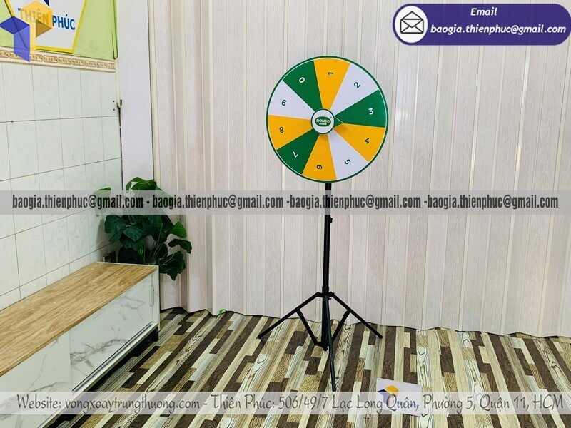 Mẫu vòng xoay số lớn quay trúng thưởng cho event- Xưởng sản xuất & Công Ty Thiên Phúc là xưởng chuyên nhận đặt làm theo yêu cầu - gia công - sản xuất - cung cấp nhiều mẫu vòng quay quay trúng thưởng với nhiều kích thước và mẫu mã khác nhau đường kính 60cm - 80cm. Thiết kế logo và in ấn theo yêu cầu khách hàng, thiết kế các ô quà tặng trúng thưởng miễn phí. Giá dao động rẻ nhất - cánh tranh nhất thị trường chỉ từ 850.000đ/cái - 1.300.000đ/cái trở lên đối với mẫu vòng quay chân xếp đứng. Đặt hàng số lượng lớn chiết khấu ưu đãi. Liên hệ ngay Thiên Phúc để nhận được báo giá chi tiết và nhanh nhất. Giao hàng trên toàn quốc trong vòng 2-4 ngày.
