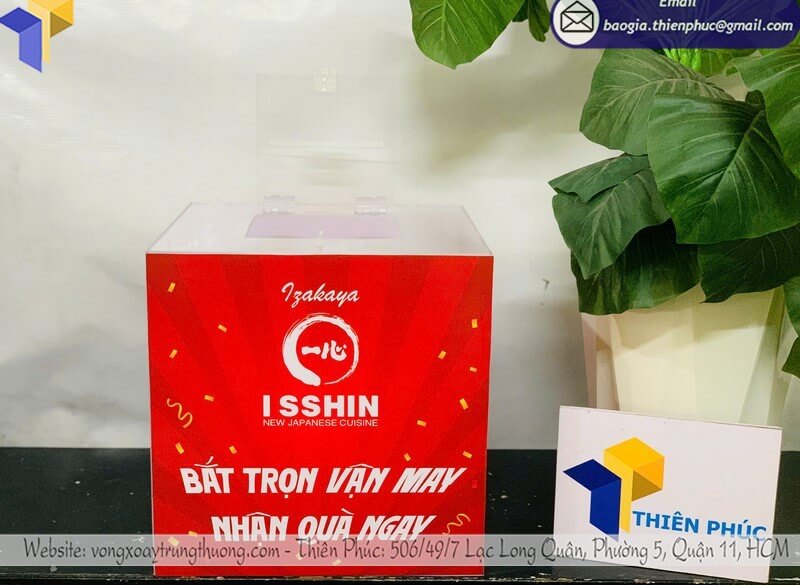 Mua Hộp đựng rút thăm may mắn mica trong giá rẻ - Thiên Phúc chuyên nhận thiết kế và bán hộp đựng rút thăm may mắn/trúng thưởng mica trong cho các chương trình sự kiện với giá rẻ nhất dao động chỉ từ 480.000đ - 800.000đ/hộp đã in logo. Đặt hàng số lượng lớn từ 10 cái trở lên nhận ngay nhiều ưu đãi. Hỗ trợ xuất hóa đơn VAT. Giao hàng nhanh trên toàn quốc. Liên hệ ngay với chúng tôi để nhận được báo giá nhanh chóng