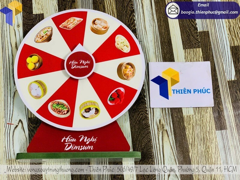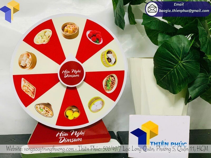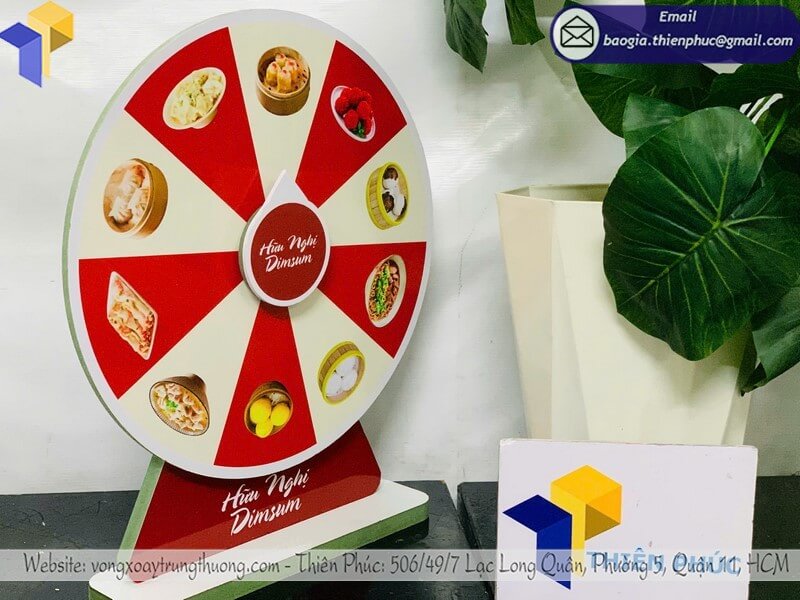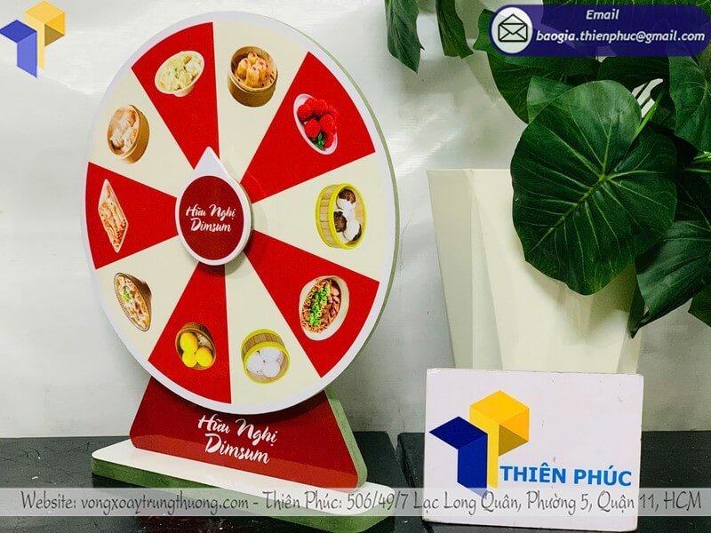 - Tăng nhận diện thương hiệu: Có thể in logo, thông điệp quảng cáo, màu sắc nhận diện trên vòng quay.