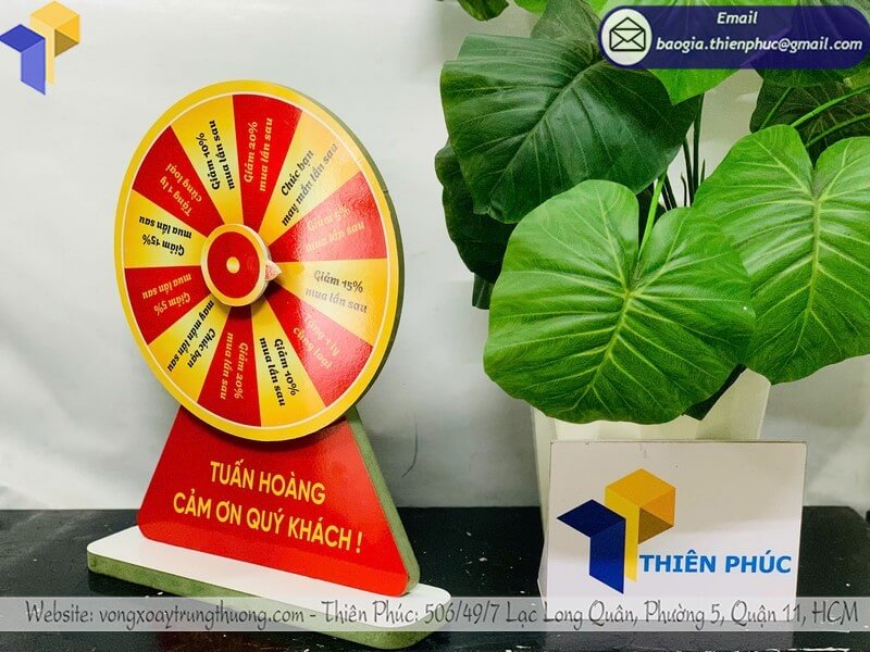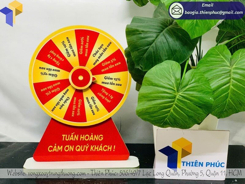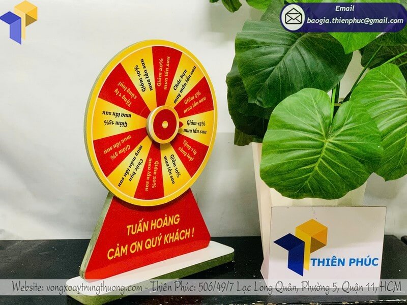 - Tất cả các mẫu tại xưởng Thiên Phúc đều có tùy chỉnh kích thước, màu sắc, số ô trúng quà và in logo thương hiệu theo yêu cầu.