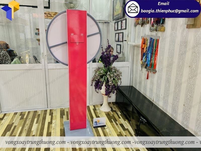 Vòng xoay may mắn có nhiều kiểu dáng và kích thước khác nhau khách hàng có thể đặt theo thiết kế hoặc theo yêu cầu của khách hàng.Vòng quay trúng thưởng với ưu điểm gọn nhẹ, chắc chắn phù hợp với không gian hẹp có nhiều người vòng quay dễ dàng di chuyển nhiều nơi .