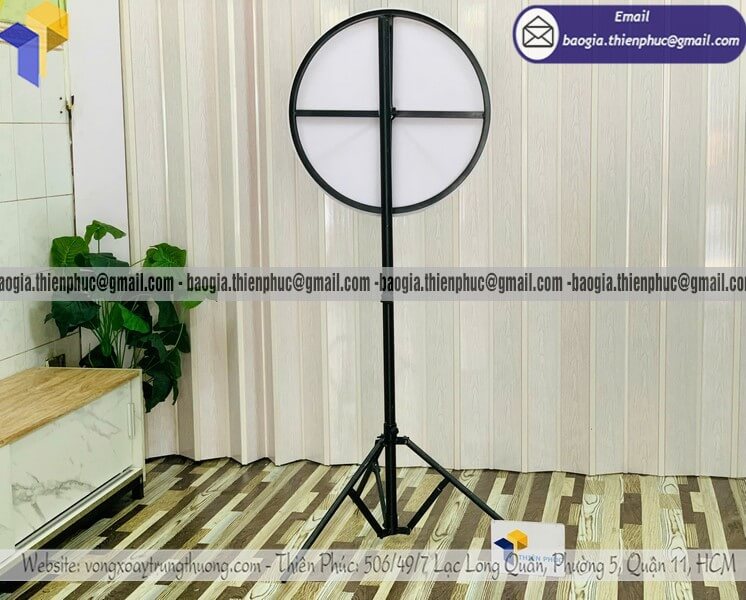Nơi làm vòng quay thưởng lớn trúng quà chương trình event - Xưởng sản xuất & Công Ty Thiên Phúc là xưởng chuyên nhận đặt làm theo yêu cầu - gia công - sản xuất - cung cấp nhiều mẫu vòng quay quay trúng thưởng với nhiều kích thước và mẫu mã khác nhau đường kính 60cm - 80cm. Thiết kế logo và in ấn theo yêu cầu khách hàng, thiết kế các ô quà tặng trúng thưởng miễn phí. Giá dao động rẻ nhất - cánh tranh nhất thị trường chỉ từ 850.000đ/cái - 1.300.000đ/cái trở lên đối với mẫu vòng quay chân xếp đứng. Đặt hàng số lượng lớn chiết khấu ưu đãi. Liên hệ ngay Thiên Phúc để nhận được báo giá chi tiết và nhanh nhất. Giao hàng trên toàn quốc trong vòng 2-4 ngày.