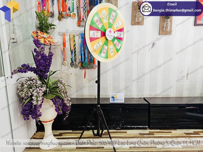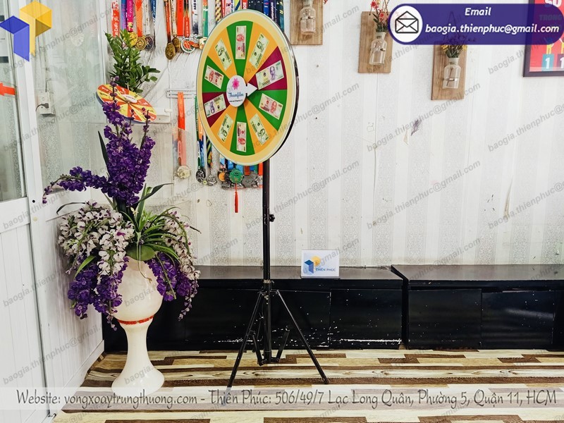 Vòng quay may mắn sự kiện phục vụ cho các chương trình quay số trúng thưởng, các chương trình event quảng cáo, quà tặng tri ân khách hàng. Sản phẩm vòng quay trúng thưởng của chúng tôi được sản xuất bằng những chất liệu bền đẹp, gia cố định hình chắc chắn thẩm mỹ. Tư vấn kích thước và chất liệu phù hợp với ngân sách và mục đích sử dụng, hỗ trợ thiết kế khi khách hàng chưa có bản thiết kế, giá cạnh tranh cho các đơn hàng sản xuất vòng quay trúng thưởng, vòng quay may mắn với số lượng lớn.