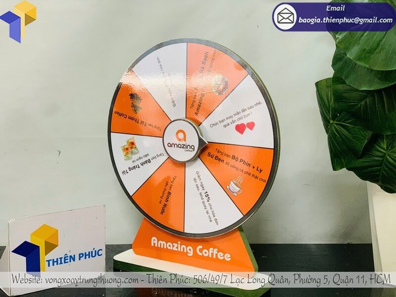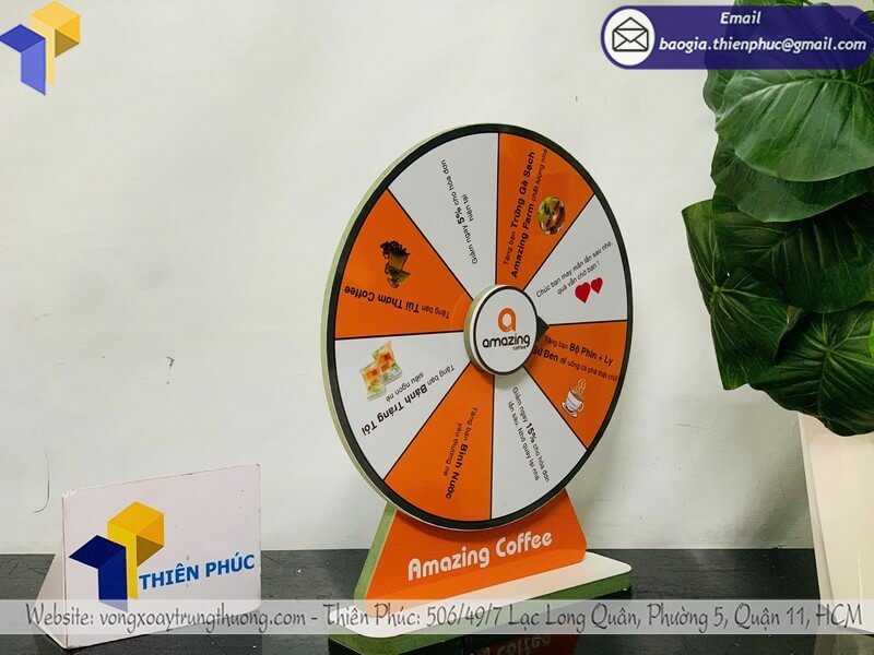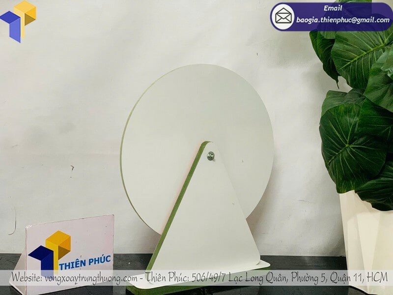 Bạn có thể chọn kích thước, màu sắc, chất liệu, số ô quay, hình dạng chân đế, hoặc thậm chí thiết kế độc quyền theo logo doanh nghiệp.