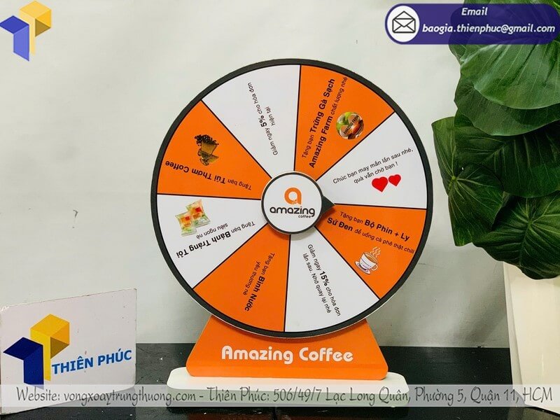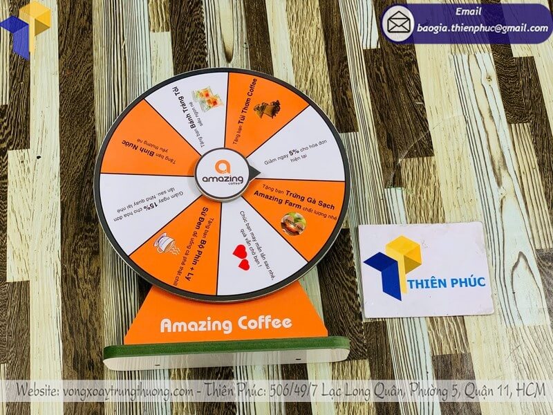 Tại Thiên Phúc, chúng tôi chuyên sản xuất vòng quay may mắn sự kiện chất lượng cao, thiết kế miễn phí, gia công tỉ mỉ, đảm bảo mỗi sản phẩm đều mang “linh hồn riêng” của thương hiệu bạn.