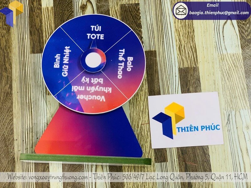 Công Ty Thiên Phúc là xưởng sản xuất chuyên nghiệp với hơn 10 năm kinh nghiệm trong lĩnh vực sản xuất, gia công và cung cấp các sản phẩm vòng quay gỗ xoay trúng thưởng để bàn minigame.