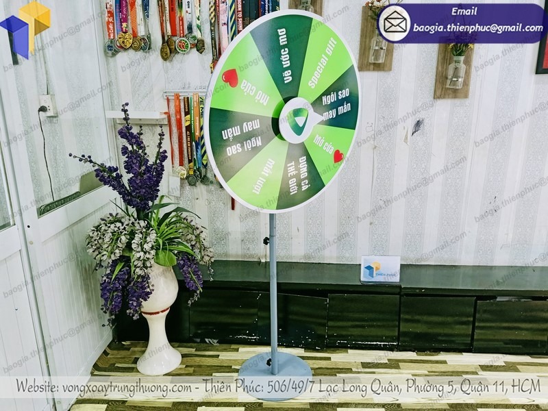 Thiên Phúc là công ty chuyên cung cấp các mặt hàng vật phẩm quảng cáo cũng như để tổ chức các chương trình tri ân khách hàng. Vòng quay may mắn đẹp là một trong số các sản phẩm tiềm năng của công ty chúng tôi… Khách hàng có nhu cầu đặt mua, sản xuất vòng quay trúng thưởng chân trụ, vui lòng liên hệ đến công ty để được tư vấn