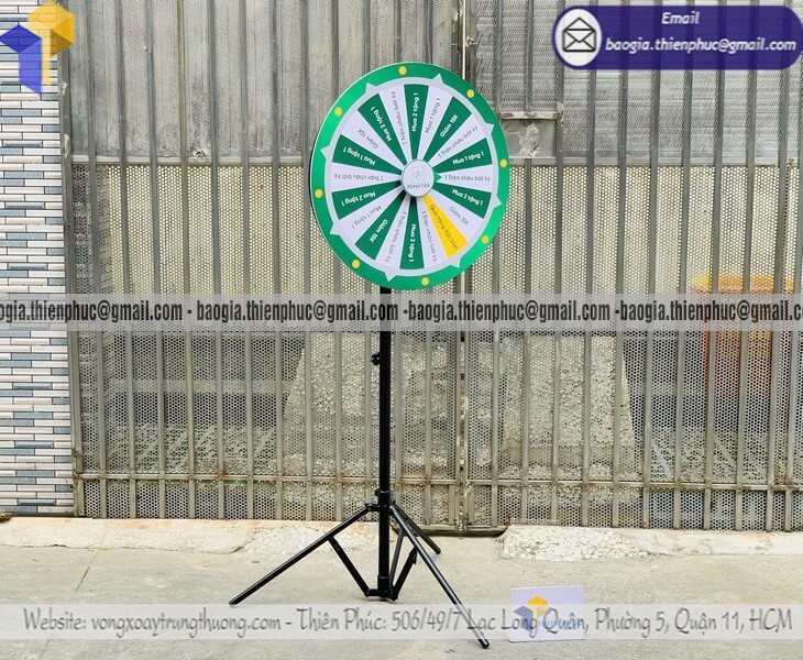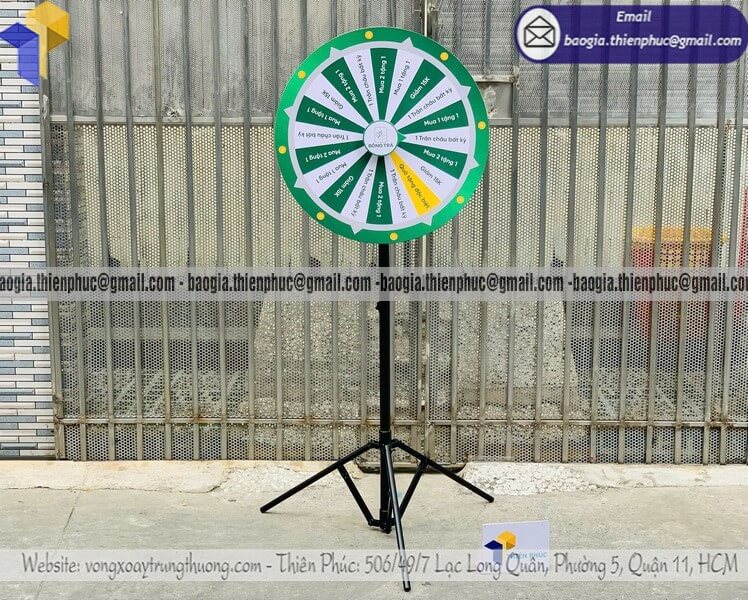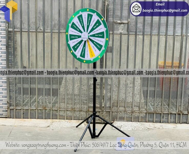 Vòng quay số lớn quay thưởng cho chương trình khuyến mãi - Xưởng sản xuất & Công Ty Thiên Phúc là xưởng chuyên nhận gia công nhiều mẫu vòng quay xoay thưởng với nhiều kích thước và mẫu mã khác nhau. Thiết kế logo và in ấn theo yêu cầu khách hàng, thiết kế các ô quà tặng trúng thưởng miễn phí. Giá dao động rẻ nhất thị trường chỉ từ 850.000đ/cái - 1.300.000đ/cái trở lên đối với mẫu vòng quay chân xếp đứng. Đặt hàng số lượng lớn chiết khấu ưu đãi. Liên hệ ngay Thiên Phúc để nhận được báo giá chi tiết và nhanh nhất. Giao hàng trên toàn quốc trong vòng 2-4 ngày.