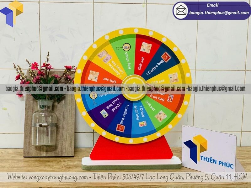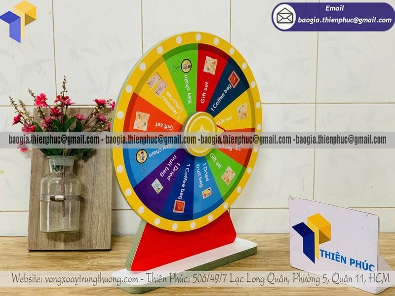 Chỉ với mức giá dao động từ hơn 400.000đ/cái trở lên, bạn đã có thể sở hữu một chiếc vòng xoay quay thưởng chắc chắn, thiết kế đẹp mắt, quay mượt và dễ dàng sử dụng cho các chương trình như: