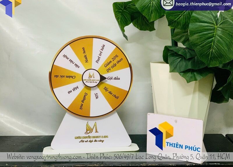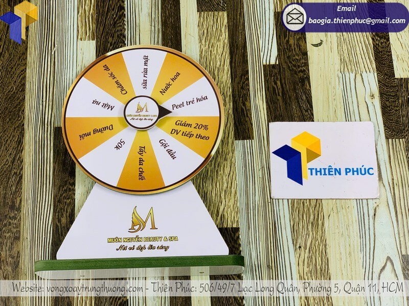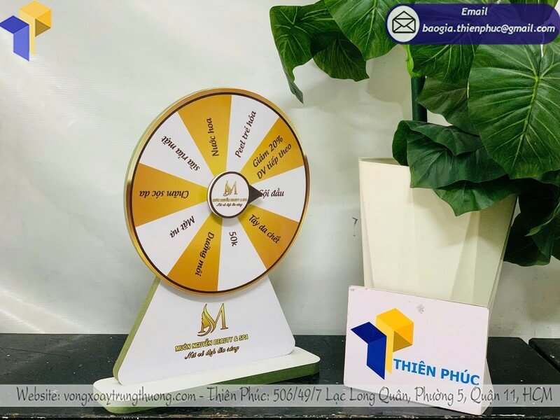 Tên sản phẩm: Xưởng bán vòng xoay gỗ quảng cáo để bàn minigame với thương hiệu MUÔN NGUYỄN BEAUTY & SPA