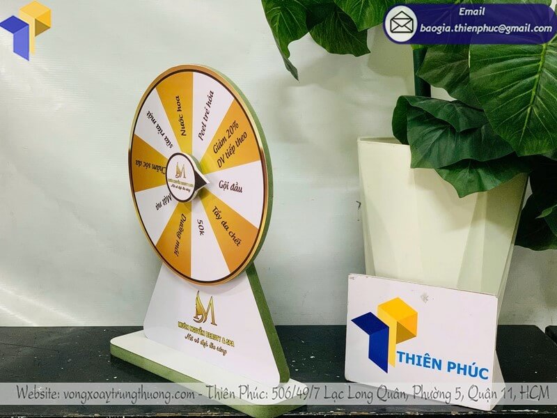 - Sản phẩm cá nhân hóa: Theo yêu cầu khách hàng, số ô quay, màu sắc, kích thước.