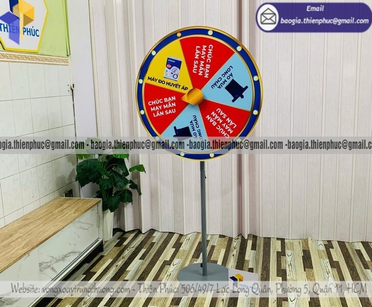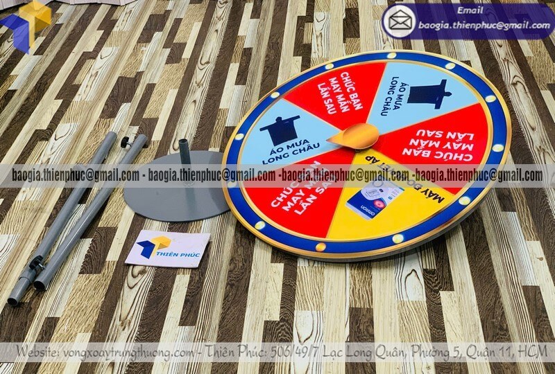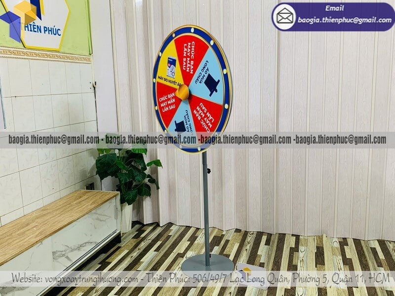 Xưởng bán vòng xoay lớn trúng quà ngẫu nhiên minigame - Xưởng Thiên Phúc là xưởng sản xuất và công ty chuyên nhận đặt hàng mẫu vòng xoay theo yêu cầu với kích thước từ 60cm - 80cm và gia công nhiều mẫu vòng quay xoay thưởng may mắn sự kiện. Với nhiều kích thước, mẫu mã khác nhau. Giá rẻ nhất dao động chỉ từ 800.000đ - 1.300.000đ/cái trở lên đối với mẫu vòng quay đế tròn đứng. Đặt hàng số lượng lớn từ 10 cái trở lên được ưu đãi. Liên hệ với chúng tôi để được báo giá chi tiết - tư vấn mẫu mã.