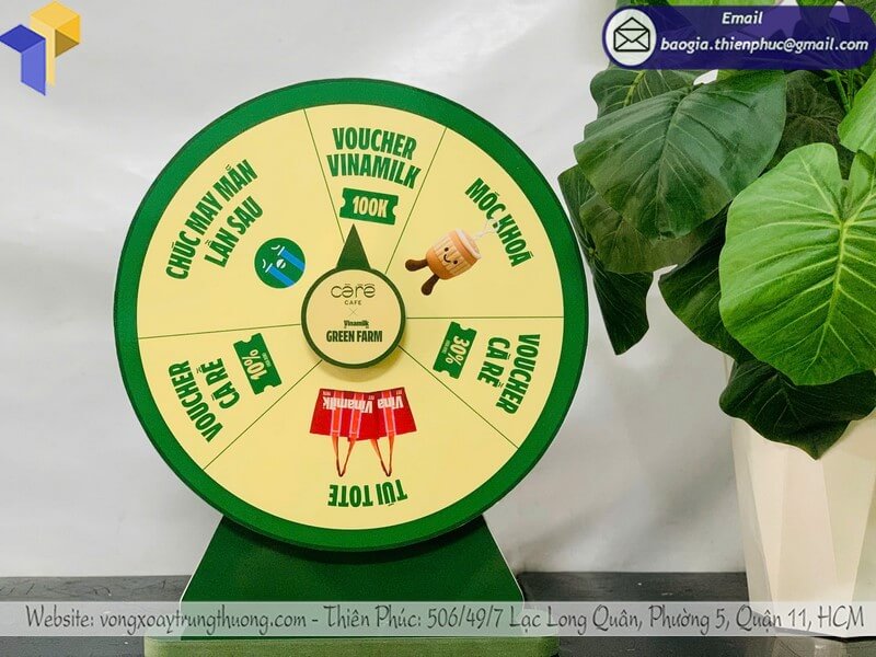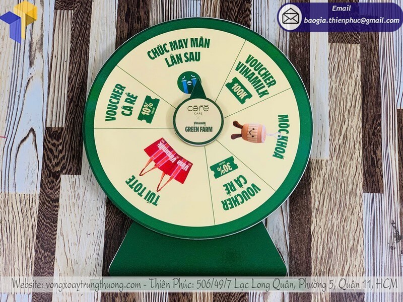 Tên sản phẩm: Đặt làm vòng quay may mắn để bàn theo yêu cầu với nhãn hàng GREEN FARM - VINAMILK