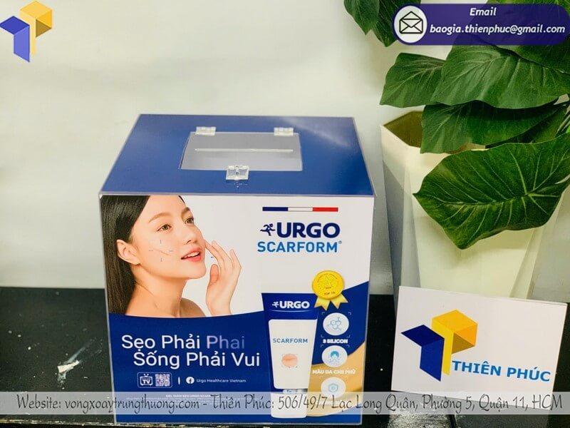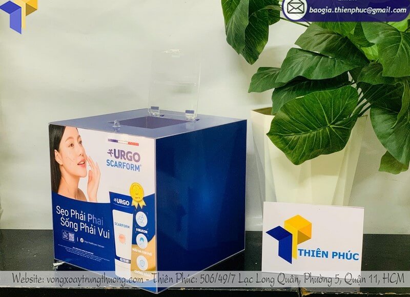 Tên sản phẩm: Xưởng in hộp bỏ phiếu mica rút thăm trúng thưởng giá rẻ nhãn hàng URGO