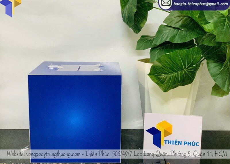 Xưởng in hộp bỏ phiếu mica rút thăm trúng thưởng giá rẻ - Thiên Phúc là xưởng sản xuất chuyên cung cấp và gia công nhiều mẫu hộp bỏ phiếu bằng mica với kích thước 30cm, 40cm. Giá dao động chỉ từ 480.000đ - 800.000đ/hộp, In logo theo yêu cầu. Giao hàng nhanh chóng trên toàn quốc.
