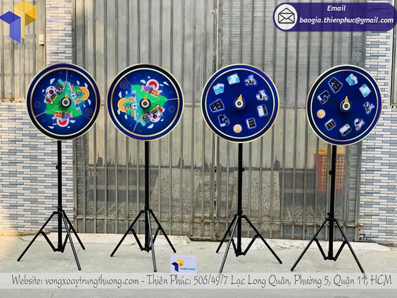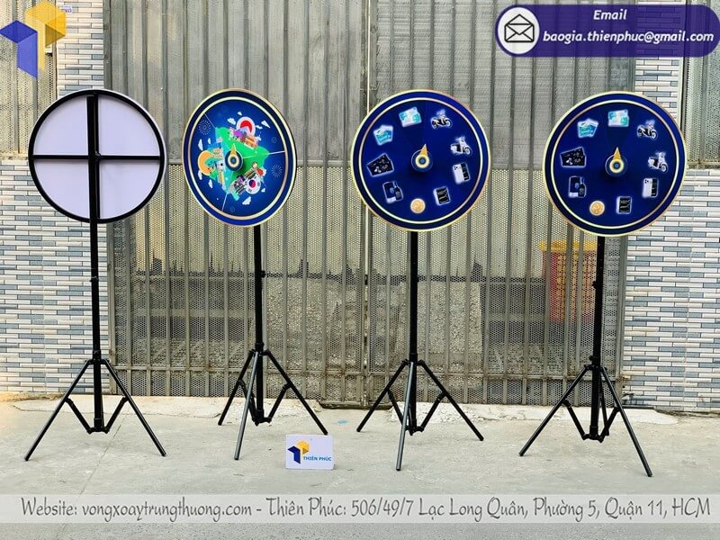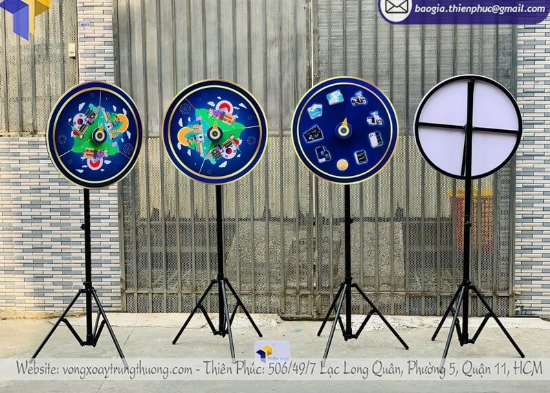 Xưởng làm vòng xoay giải thưởng lớn cho doanh nghiệp - Thiên Phúc là xưởng sản xuất & Công Ty chuyên gia công nhiều mẫu vòng quay xoay giải thưởng với nhiều kích thước khác nhau. Thiết kế logo và in ấn theo yêu cầu khách hàng. Giá rẻ nhất thị trường chỉ từ 850.000đ/cái - 1.300.000đ/cái trở lên đối với mẫu vòng xoay chân xếp đứng. Đặt hàng số lượng lớn chiết khấu ưu đãi. Liên hệ ngay Thiên Phúc để nhận được báo giá chi tiết và nhanh nhất. Giao hàng trên toàn quốc.