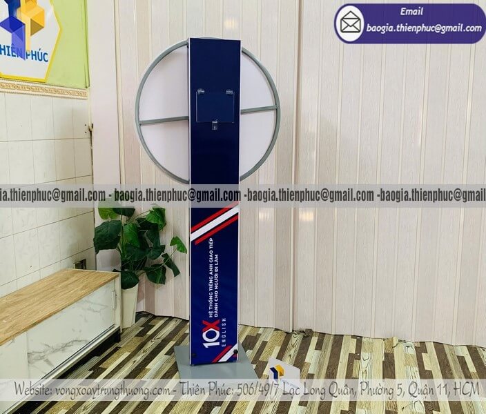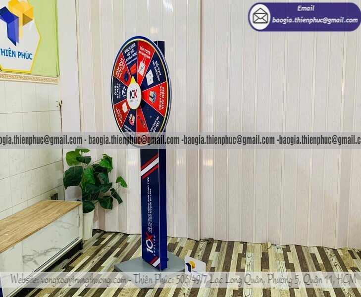 Xưởng làm vòng xoay thưởng lớn trúng quà ngẫu nhiên - Xưởng sản xuất & Công Ty Thiên Phúc chuyên nhận đặt làm kích thước, mẫu mã theo yêu cầu, sản xuất, gia công, cung cấp nhiều mẫu vòng xoay quảng cáo từ nhỏ đến cỡ lớn trúng thưởng chính hãng. Giá rẻ cạnh tranh nhất thị trường dao động chỉ từ 1.300.000đ/cái - 2.600.000đ/cái đối với mẫu vòng xoay đứng thân trụ/bảng trụ kèm thiết kế logo các ô quà tặng, voucher miễn phí theo yêu cầu khách hàng. Hỗ trợ xuất hóa đơn VAT nhanh chóng. Giao hàng nhanh trên toàn quốc từ 2-3 ngày.