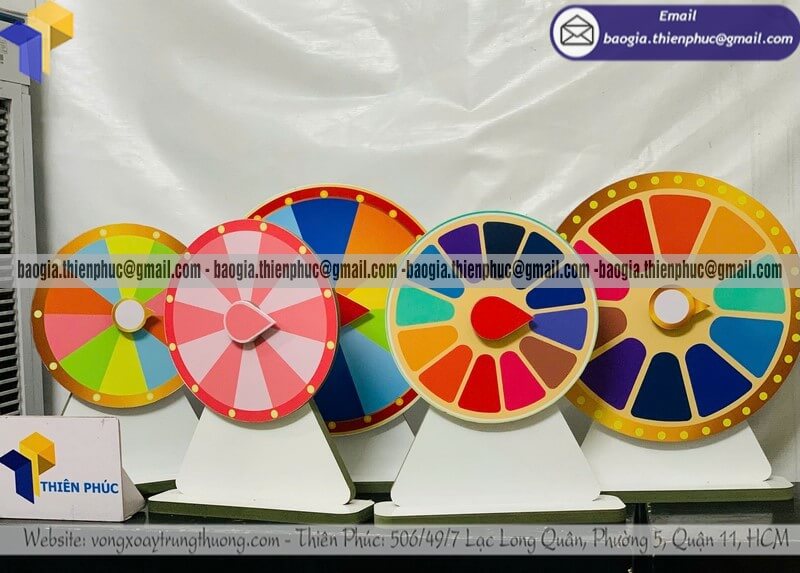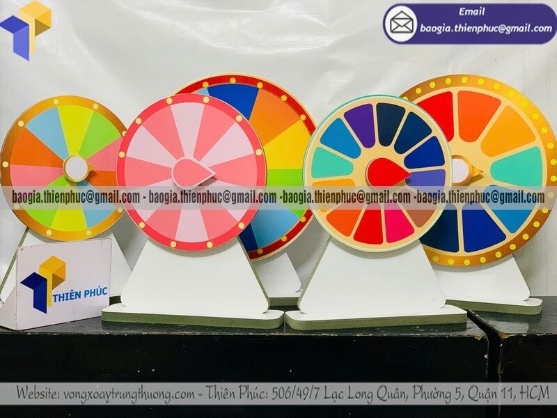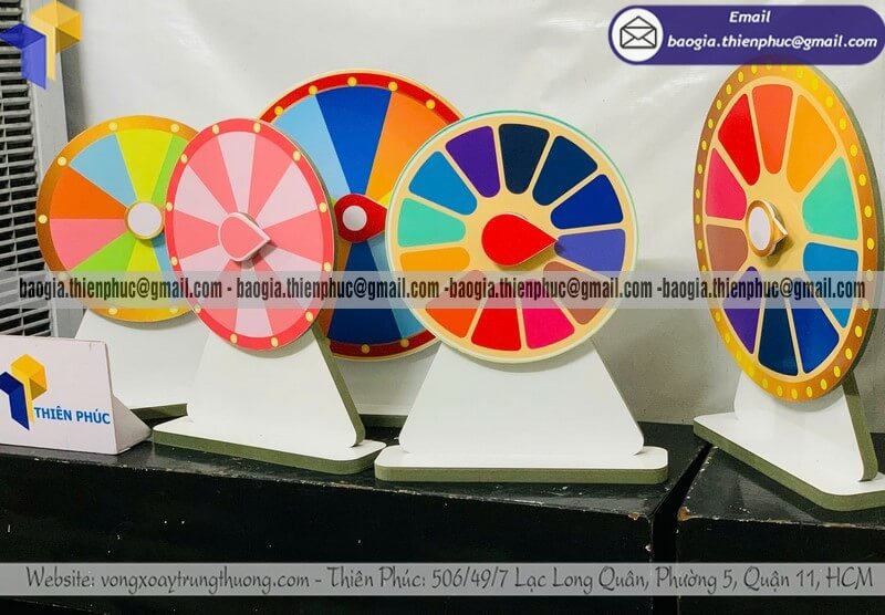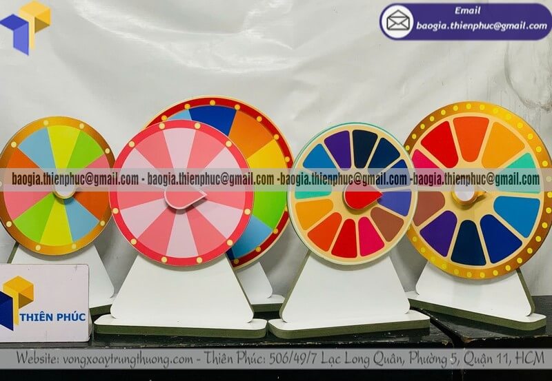 Xưởng sản xuất vòng xoay để bàn bằng gỗ có sẵn - Xưởng sản xuất & Công Ty Thiên Phúc là xưởng chuyên nhận đặt làm nhiều mẫu vòng xoay để bàn bằng gỗ với hơn 10 năm kinh nghiệm và có nhiều mẫu có sẵn tại xưởng. Với kích thước vòng xoay có đường kính là 30cm, 40cm. Xưởng còn thiết kế logo, ô quà trúng hoàn toàn miễn phí, theo yêu cầu khách hàng. Dao động rẻ nhất chỉ dưới 1 triệu trở xuống.