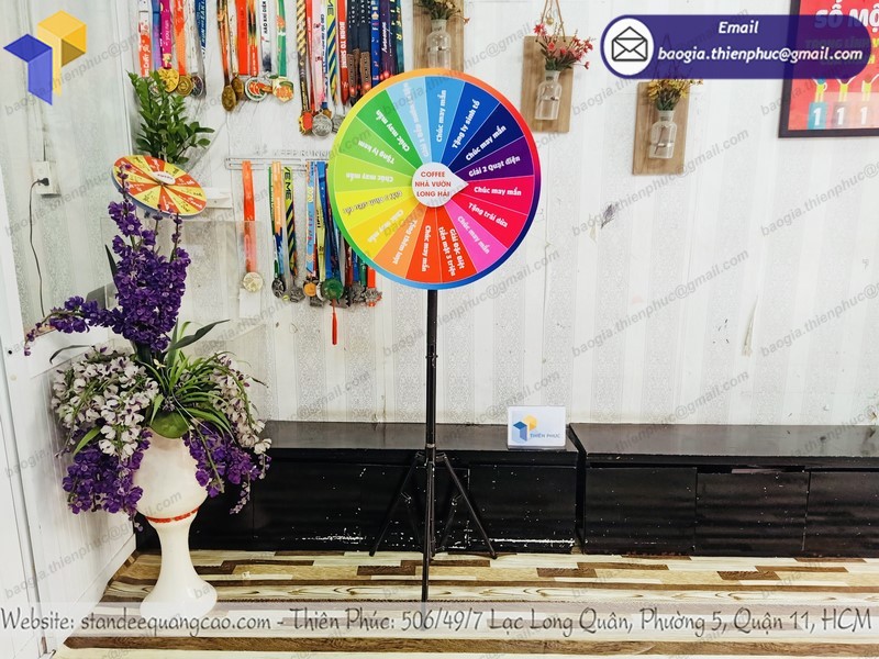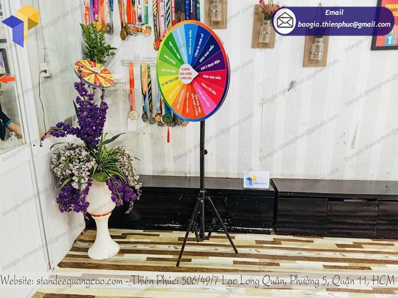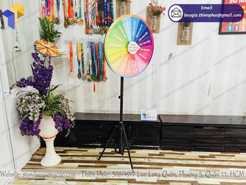 Công ty Thiên Phúc là đơn vị đi đầu trong lĩnh vực bán vòng quay trúng thưởng đẹp giá rẻ với đa dạng mẫu mã, chất lượng và kích thước khác nhau. Phù hợp với nhiều nhu cầu, mục đích sử dụng của khách hàng.